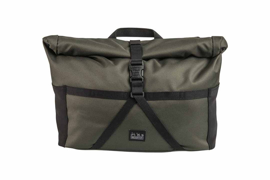 Additional highlights include an extra load strap system, a rubberized webbing carry handle, and a detachable shoulder strap. Weighing just 0.37 kg and compatible with all Brompton bike handlebars, this bag combines practicality with style for life on the go.