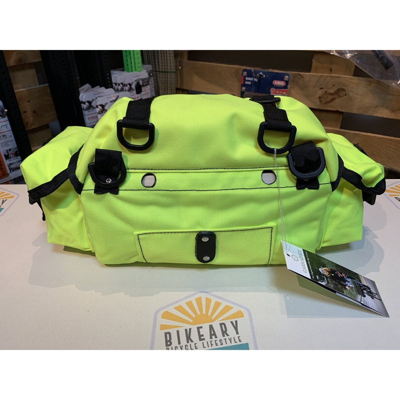The Lightweight Audax Saddlebag has been designed to meet the needs of the fast tourer, Audax or Randonneur rider. This popular sized saddlebag is a smaller version of the Super C Saddlebag which makes it ideal for day rides. This lightweight version weighs only 440g compared with 660g for the cotton duck version and its bright colour and reflective patches makes it extremely visible in day or night time.  The saddlebag comes with 3 leather straps to attach it to the seat post and bag loops on the saddle.  For other options on fixing the saddlebag to your bike see the Saddlebag Fixing Systems section. To carry the saddlebag off the bike, a shoulder sling is available in Accessories.