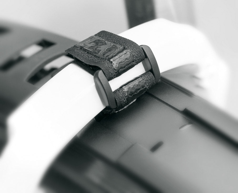 The VELOFLEXX bridge allows the rear mudguard to be mounted at the top of the seat bar without tools, using rubber straps. If, despite the disc brakes, there is a crossbar between the seat stays, the distance between the tyre and the crossbar must be 30 mm in order for the bike to be compatible with the VELOFLEXX mudguard.