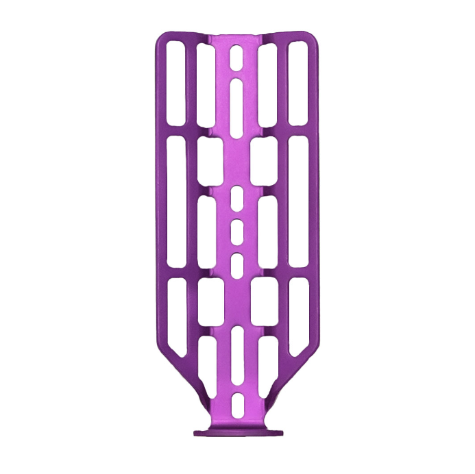 The original one-piece aluminum cargo carrier. The Widefoot CargoMount allows you to securely strap down a variety of bottles, smaller bags, and cylindrical objects to your bike frame or fork. Made of sturdy and lightweight aluminum, and available in Silver Anodized or Black Coated finish. Our unique 7-slot configuration allows you to fine tune your installation at multiple positions on frames and forks with three-bolt mounting systems. Weighing just 68g, it’s among the lightest cargo cages on the market.