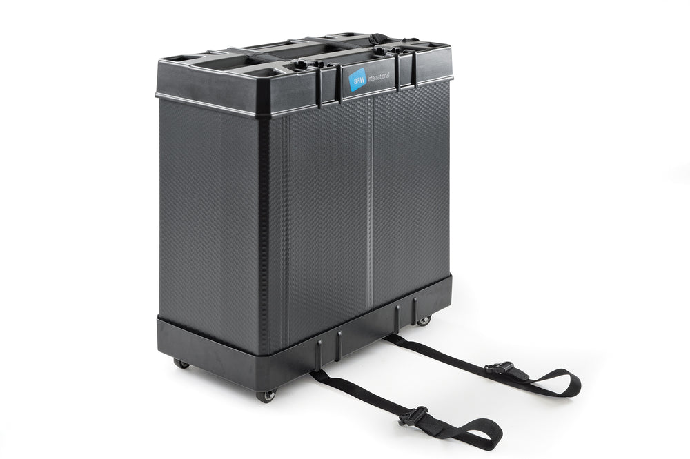 Whether for short trips or long flights, your Brompton bike is optimally stored at all times in our foldon box S. Four built-in casters—two swivel, two rigid—make transport particularly easy and handling a breeze. The padded handles allow the case to be carried or pulled without difficulty, even when fully loaded.