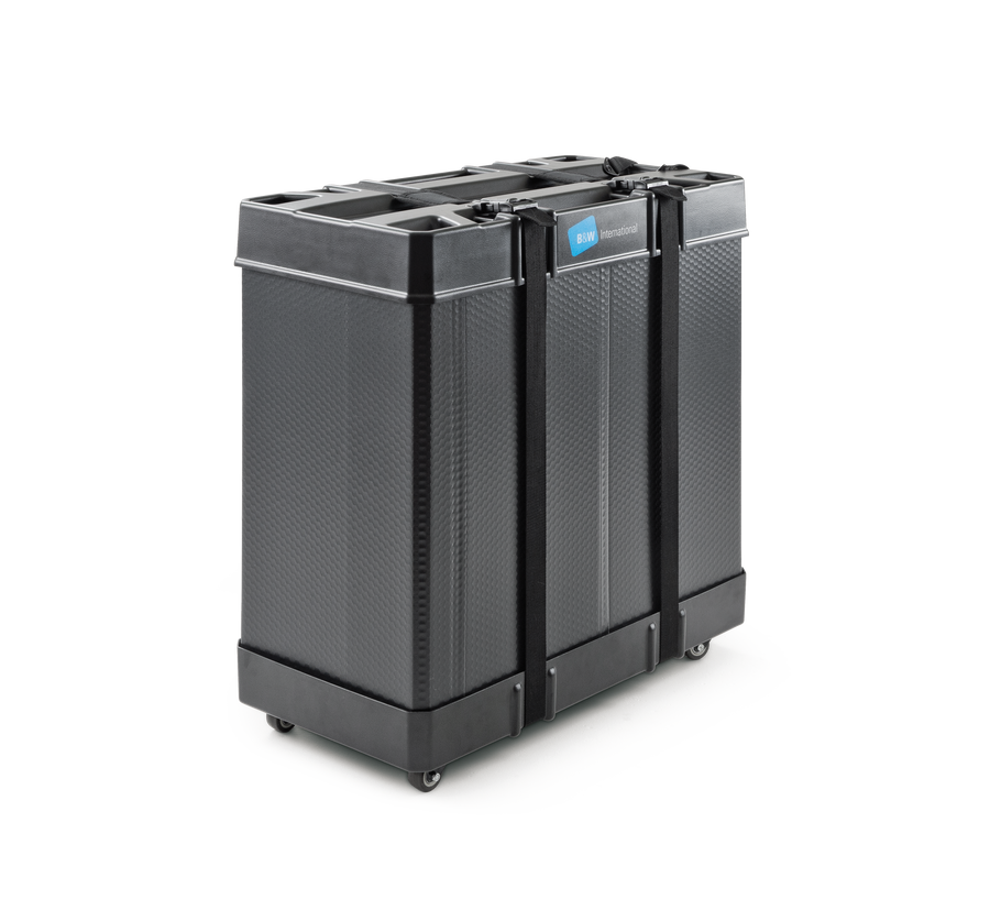 With our foldon box S, your folding bike is with you wherever you go, perfectly and securely stored. This transport case, with highly durable polypropylene (PP) side walls and extremely rugged ABS plastic shells, protects valuable Brompton bikes, whether traveling or at home, and is very easy to maneuver with its four casters. Once the foldon box S is no longer needed, it can be practically and compactly folded down and stowed. The resulting reduction in volume of 70% means this transport case can fit just about anywhere.