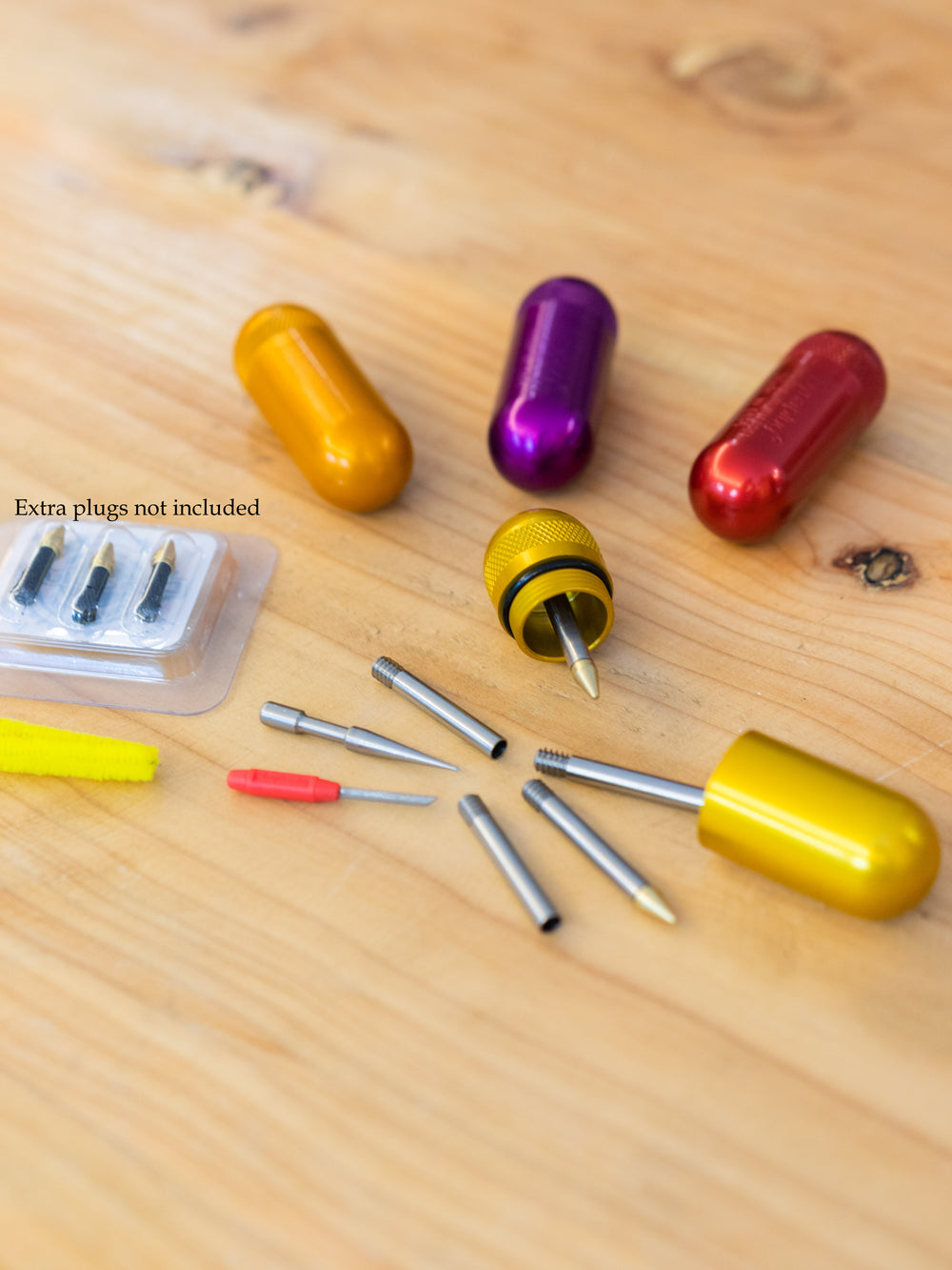 The Dynaplug Pill (aka Micro Pro) is crafted for the scale of a puncture repair in a tubeless bicycle tire. The reduced force needed to repair a bicycle tire resulted in this ergonomic, compact repair tool with extreme durability and efficiency. This expands Dynaplug into the area of UST tires and tires converted from tube-type “bike rim and tire” with a Stan's Tubeless Conversion Kit.
