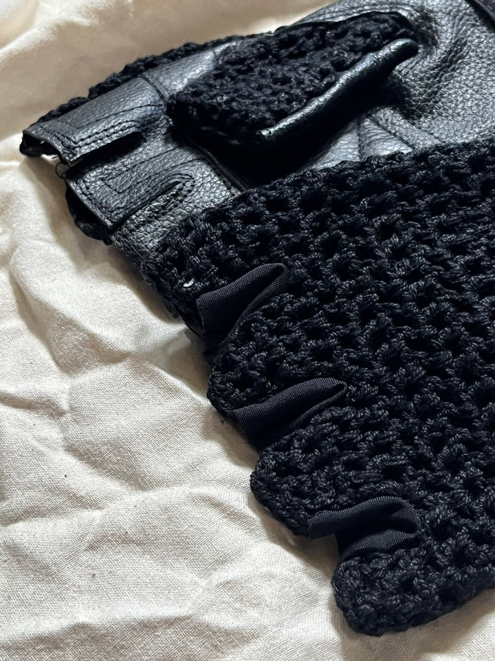 Leather Crocheted Gloves (Triple Black)