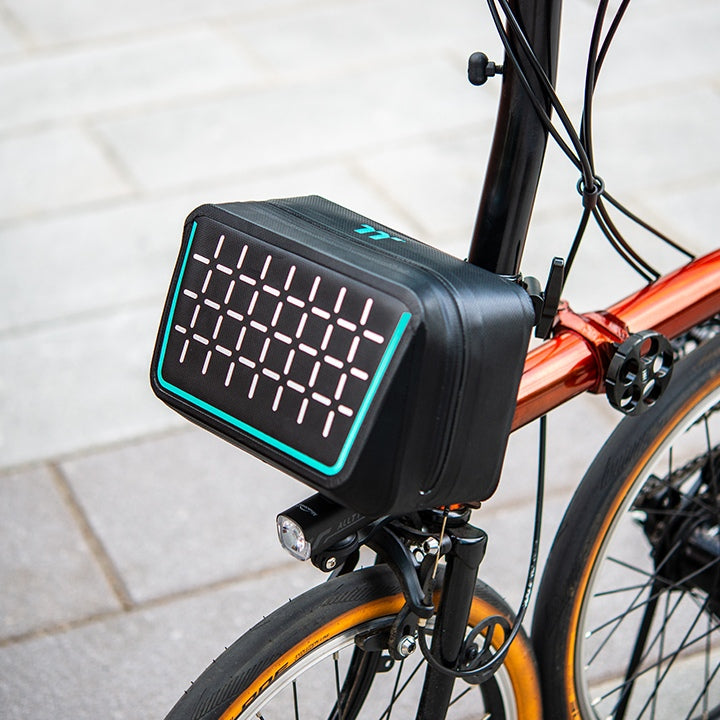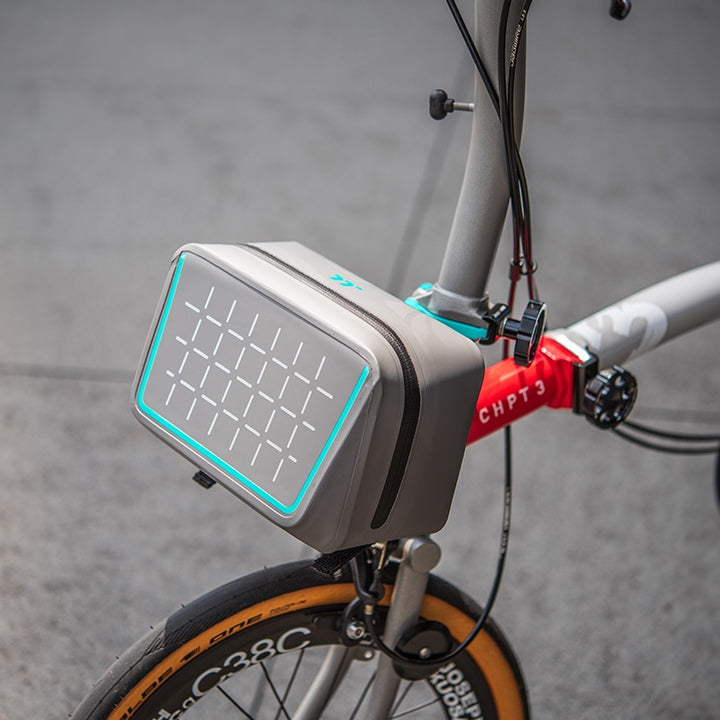 Its unique cut angle allows the bar to reduce the windward area on the bicycle and the 3M reflective printing on the surface of the bag improves night riding safety. The waterproof performance is up to IP44-level multi-directional splash resistance. This bag fits all you need for the day while keeping things casual and stylish.