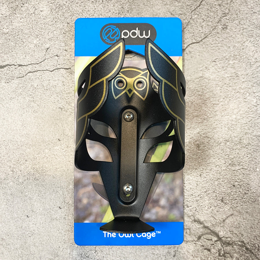 The Owl Cage is made from a single sheet of lightweight 5052 alloy. Cut in the shape of a Great Horned Owl, its wings fold in to securely cradle your water bottle. An owl cage or two is the wise choice for anyone seeking a stylish hydration holder. Works well for many different water bottle shapes, and even holds a metal water bottle nice and securely.