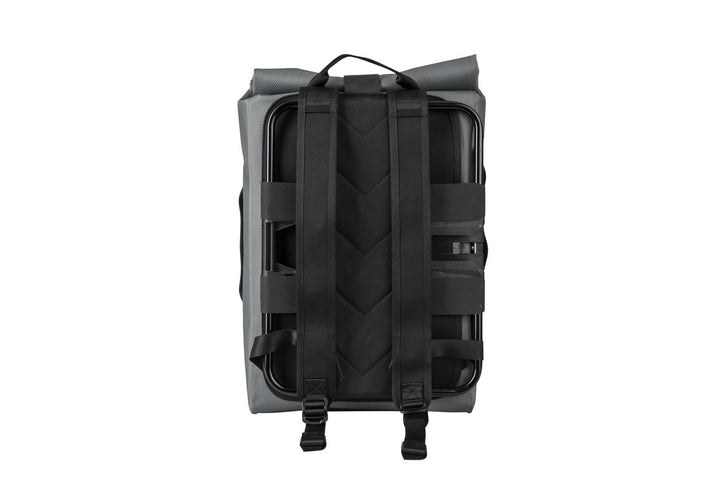 Thanks to its integrated frame attachment, this backpack easily mounts to the front of your Brompton bike using a front carrier block, then converts into a comfortable backpack when off the bike—perfect for seamless transitions between cycling and walking.